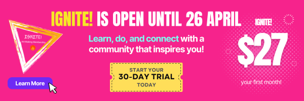 IGNITE! is a membership programme at the Gail Sibley Art School. There’s no timeline and no grades. Only super motivating, always engaging, deeper learning with exclusive access to Gail and the IGNITE! community.
