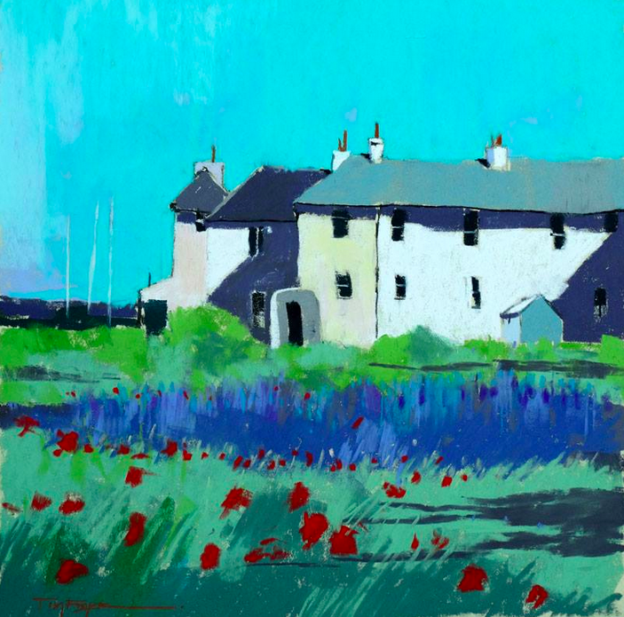 And finally, after the darkness and possible foreboding of the previous painting, I thought it would be desirable to end this blog of awesome pastels on a bright example. This one by Tim Fisher fits the bill with its cloudless turquoise sky, radiant white buildings, colourful summer grasses and flowers of greens, blues, and red. It’s so expressive of place. With it’s clean saturated colour, one can’t help but feel uplifted and joyous when looking at this pastel painting. I also like the abstract nature of its composition. See more of Tim’s work here.