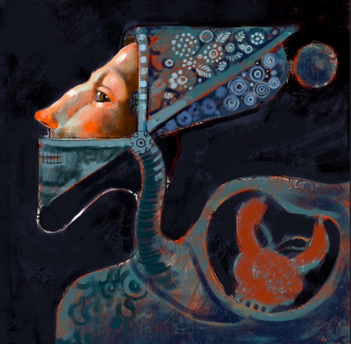 Michele Noiset, Blue Maiden, digital colour comp, Procreate. 10 x 10 in.