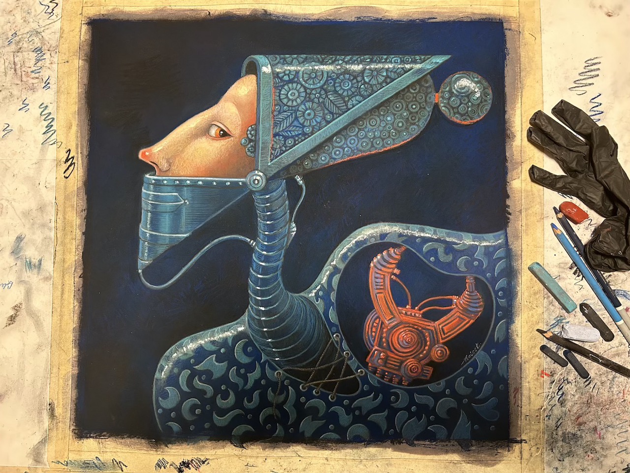 One day, I was cruising through the Dakota Arts competition winners, and boom! I was stopped in my tracks by a most unusual and gorgeous piece. The art was by Michele Noiset and I knew there and then that I just had to have her on the HowToPastel blog!