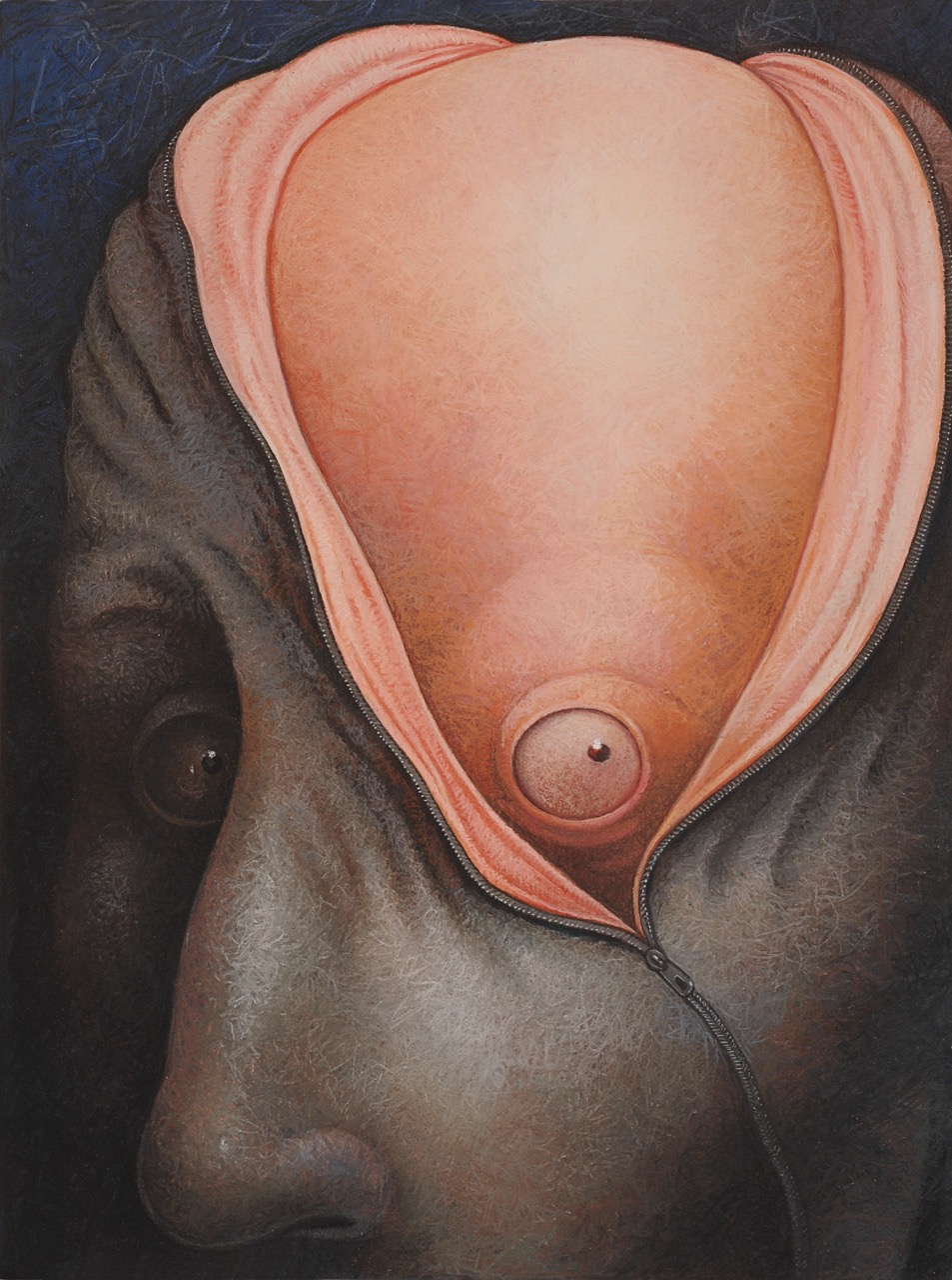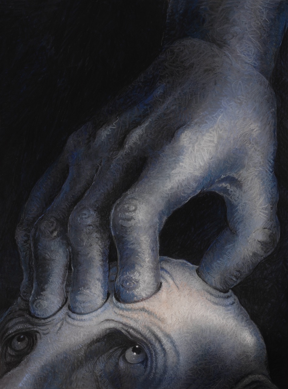 Michele Noiset, Mental Manipulation, 2011, Rembrandt, Sennelier, NuPastel on BFK Rives paper, 18 x 24 in. Inspired by the book 1984 written by George Orwell in 1949. The novel explores the way that truth and facts within societies can be manipulated.