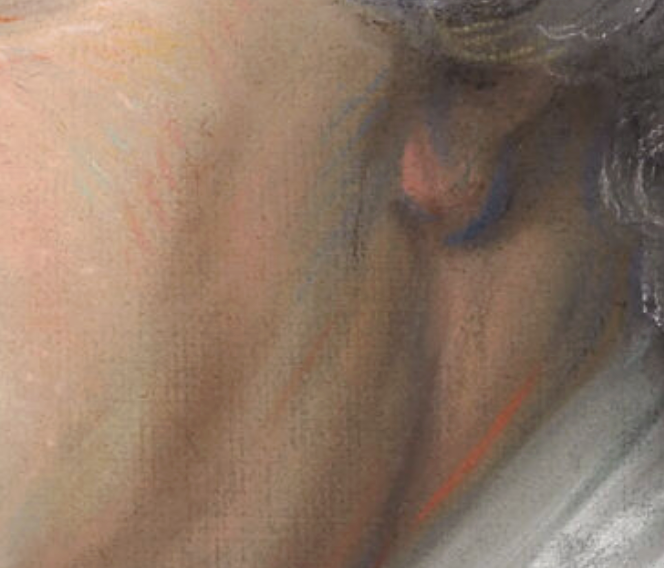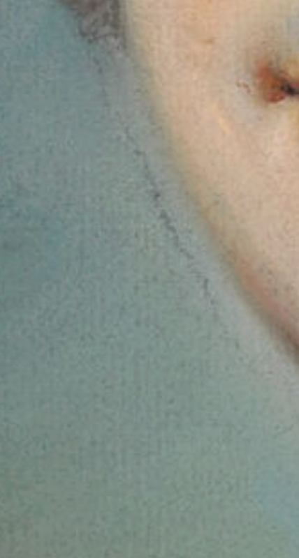 thanks for this up close and personal examination. the oil portrait painters of his time actually felt threatened by him and his medium, pastel, because he was so good. I was looking for the joints between the paper but I could not find any. Perhaps he used only one large sheet. they often glued multiple sheets to the canvas.